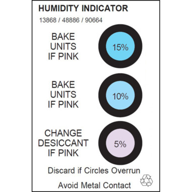 Ob in Kombination mit einem Sperrschichtbeutel oder zur eigenständigen Verwendung, die 125 Stück umfassende Packung sorgt für eine nachhaltige Lösung zur Feuchtigkeitsüberwachung in verschiedenen Anwendungen. Darüber hinaus ist dieser Artikel SVHC-frei und erfüllt die Anforderungen der RoHS-Richtlinien, was ihn zu einer sicheren Wahl für Ihre Produkte macht.