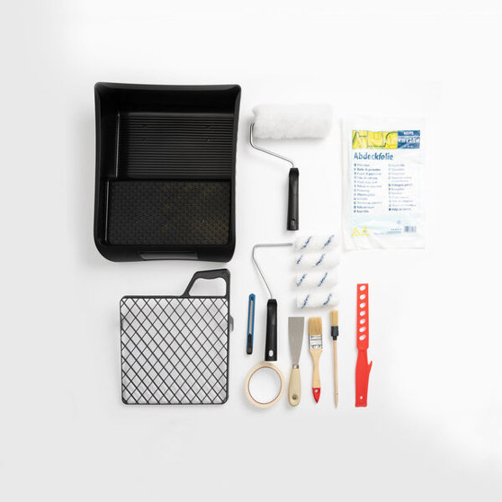 Für zusätzliche Effizienz sorgt unsere Kartuschenpistole, die das Verfugen zum Leichtesten macht. Wenn es um das Anbringen von Tapeten geht, ermöglichen unsere spezielle Tapezierbürste und die scharfe Tapezierschere ein präzises und sauberes Arbeiten. Die Deckenbürste bietet Ihnen die Möglichkeit, auch hohe Stellen mit Leichtigkeit zu erreichen, während das Cuttermesser für ultra-genaue Schnitte sorgt.