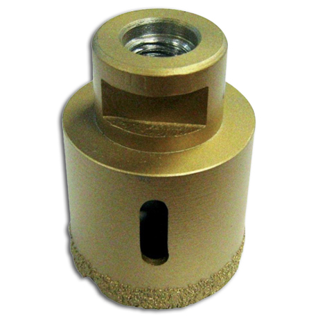 Fliesen-Bohrkrone M 14 für Winkelschleifer - Höchste Lebenserwartung und perfekte Ergebnisse in härtesten Fliesen, Dachziegeln und Feinsteinzeug - Kühlung wird durch integrierte Paraffinemulsion sichergestellt, deshalb keine zusätzliche Kühlung erforderlich,Einsetzbar für Winkelschleifer mit M14 Aufnahme bei hoher Rotationsgeschwindigkeit - Mit 3-kant Aufnahme als Drehstopp. Ausführung: Ø 82 mm.