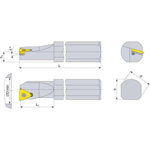 Gewinde-Bohrstange, Innenbearbeitung Ausführung: Gewinde-Bohrstange, inkl. Auflageplatte, Steigungswinkel 1,5°, Schraubenklemmung. Lieferung ohne Wendeschneidplatte, ohne Schraubendreher. Anwendung: Innengewinde – rechts/links.