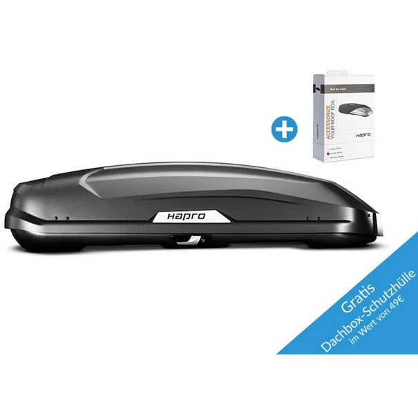 Entdecken Sie die praktische Dachbox Hapro Trivor 440 in elegantem Anthrazit. Mit einer Höhe von 45 cm und einem Gewicht von nur 20 kg ist diese Dachbox nicht nur leicht, sondern bietet auch eine beeindruckende maximale Tragkraft von 75 kg.